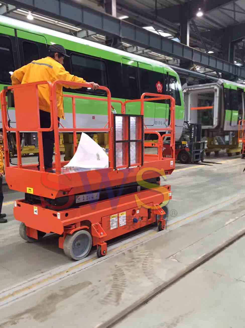 ●無級變速:型機只需一個人操作,所有的動作均在工作臺上用操作手柄控制,電機為無級變速。有效的延長了蓄電池和電機的使用壽命,電機僅消耗工作時的能量。